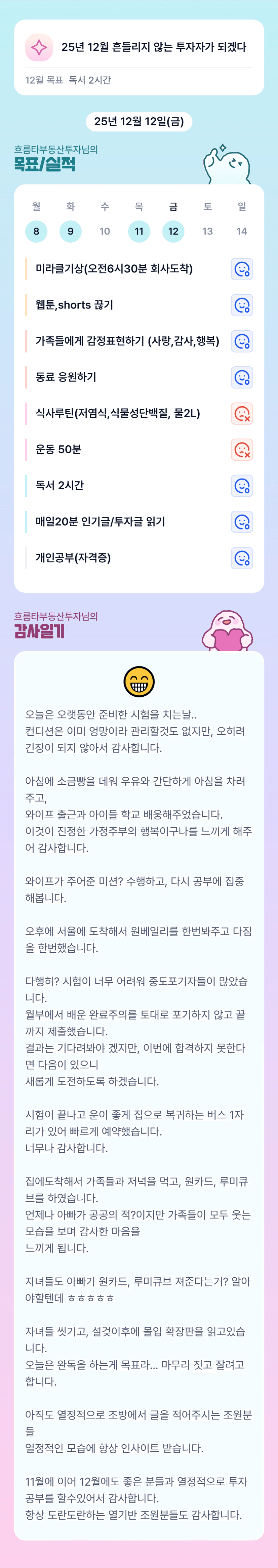 흐름타님 시험공부 하느라 고생많으셨어요~~ 저도 낼 원베일리 너어무 기대됩니다아ㅋㅋㅋ