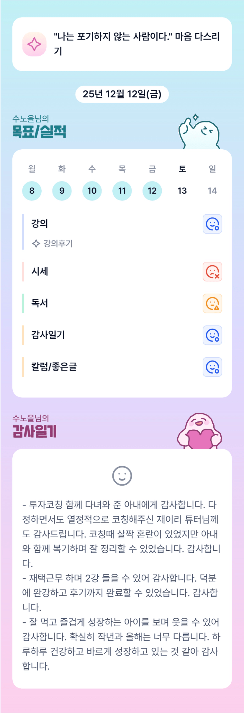 우왕 투코 다녀오셨군요!! 방향설정 다시 해보는 알찬시간이셨길요~😄😄 오늘도 행복한 토요일 보내시기 바라욤👍👍!!