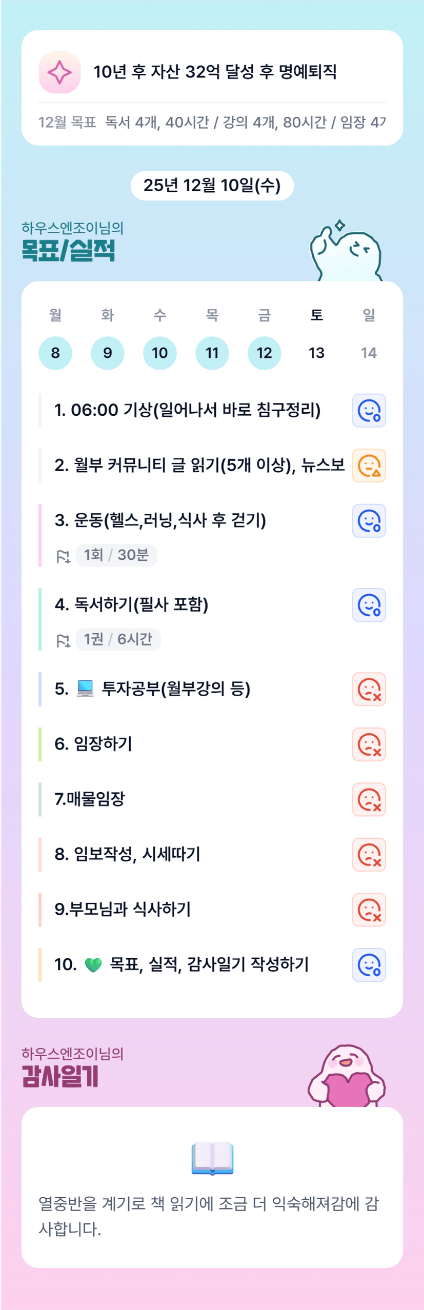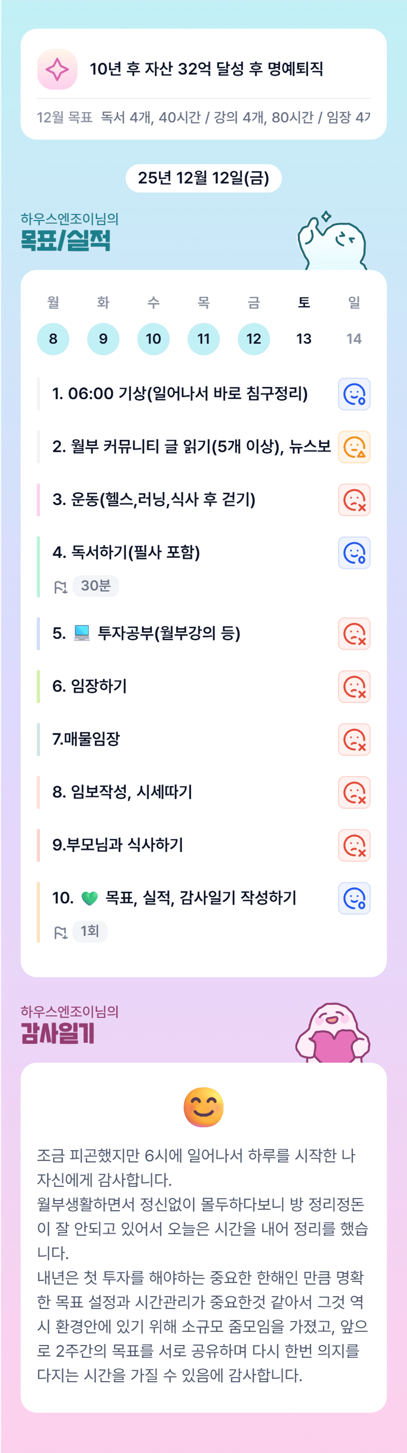 조이님, 하루하루를 진심으로 눌러담아 살고계신다는 느낌을 받습니다. 오늘도 고생하셨습니다.