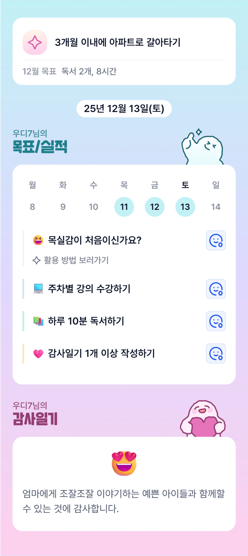 우디님, 차근 차근 하나씩 다 해내시는 모습 너무 멋집니다. 화이팅!!