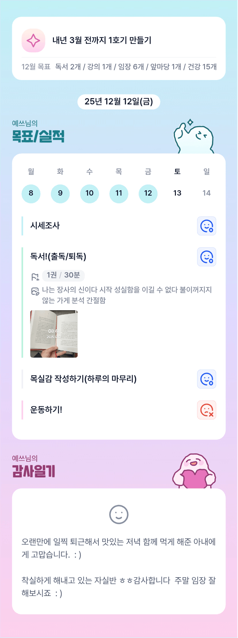월부 동료들과 꾸준하고 성실하게 목표한바 이루고 싶습니다 !! 예쓰!!!