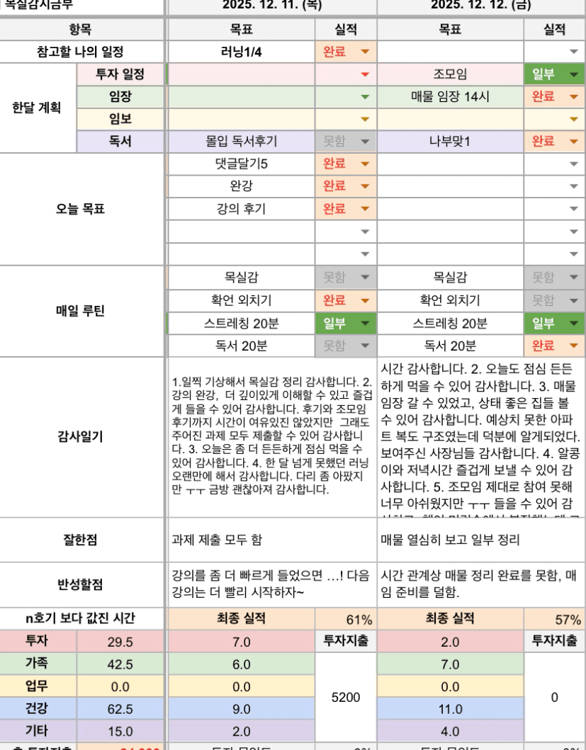 1.일찍 기상해서 목실감 정리 감사합니다. 2. 강의 완강,  더 깊이있게 이해할 수 있고 즐겁게 들을 수 있어 감사합니다. 후기와 조모임 후기까지 시간이 여유있진 않았지만  그래도 주어진 과제 모두 제출할 수 있어 감사합니다. 3. 오늘은 좀 더 든든하게 점심 먹을 수 있어 감사합니다. 4. 한 달 넘게 못했던 러닝 오랜만에 해서 감사합니다. 다리 좀 아팠지만 ㅜㅜ 금방 괜찮아져 감사합니다.