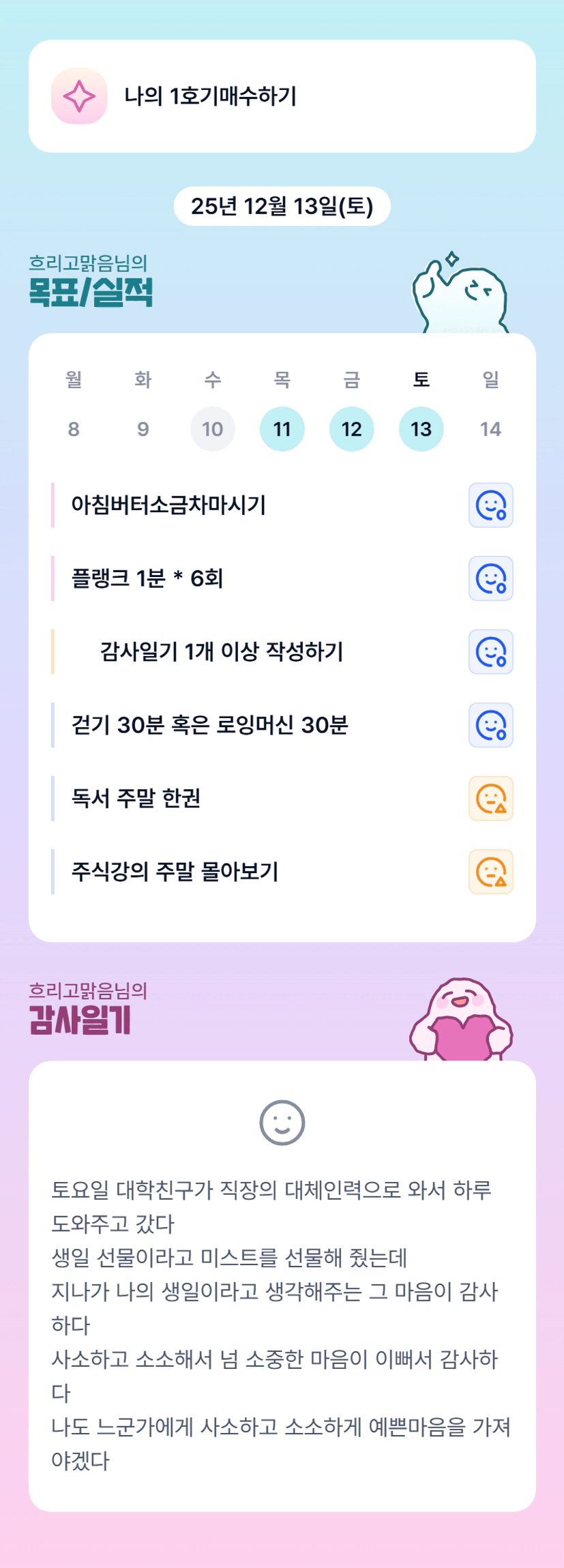 ㅎㅎ맑음님 감사일기에서 이미 예쁜 마음이 느껴지네요🤍
