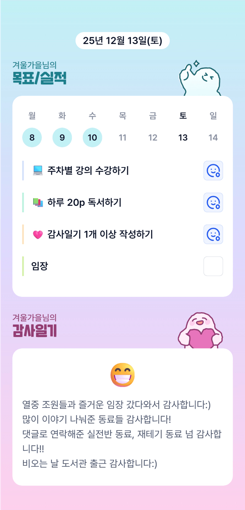 임장도 다녀오시고, 도서관도 다녀오시고! 오늘 하루 알차게 열심히 보낸 겨가을님 화이팅이요^^