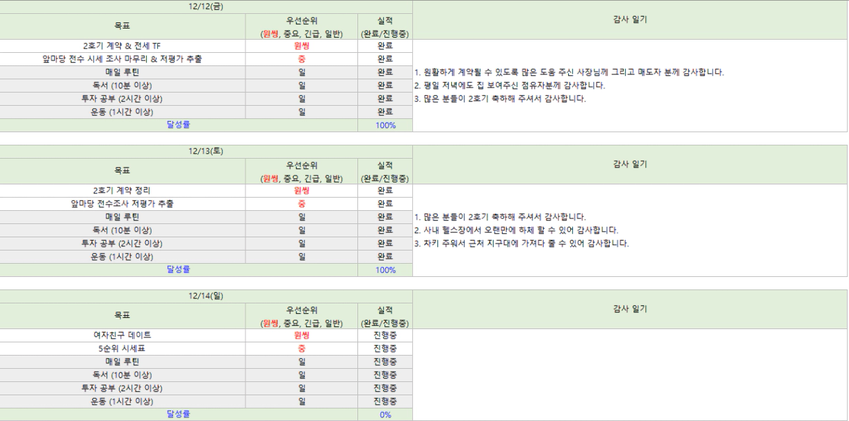 🌻12/14 목표, 12/12~13 실적 & 감사일기