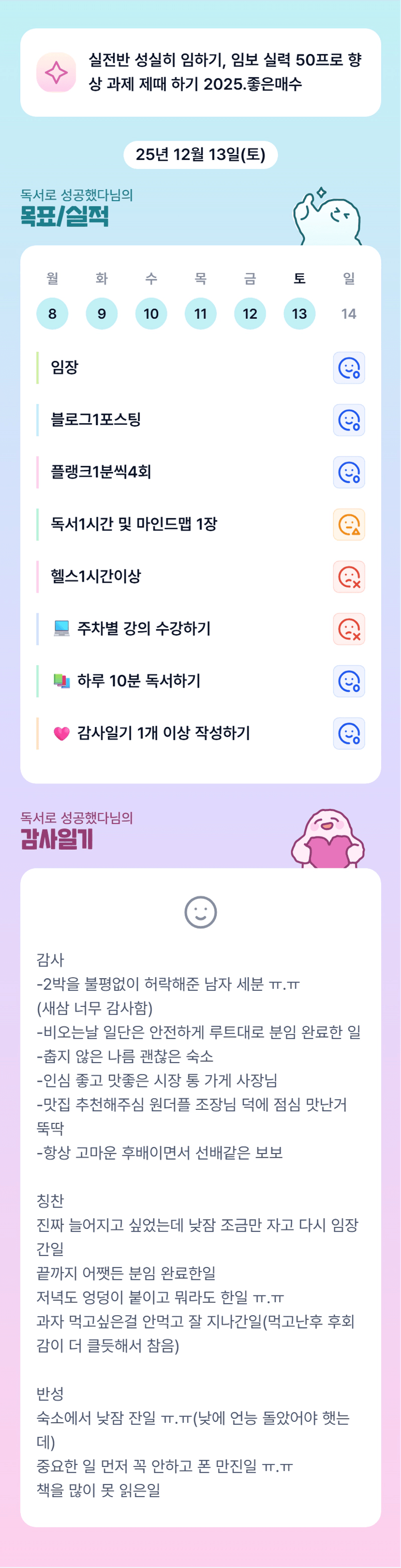 연박하시면서 임장이라니.. 독서님 멋지당~ 고생많으셨어요 연박의 노력이 꼭 보상해줄거예요 ㅎㅎ 파이팅!