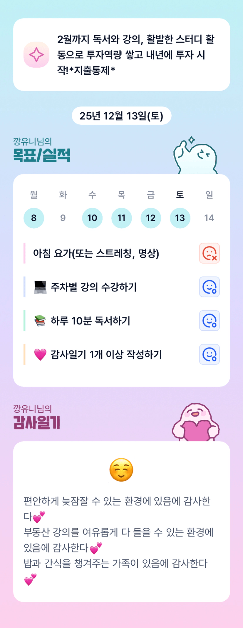 25년 내년을 계획하며 투자 공부, 화이팅이에요~~깡유니님 🤍
