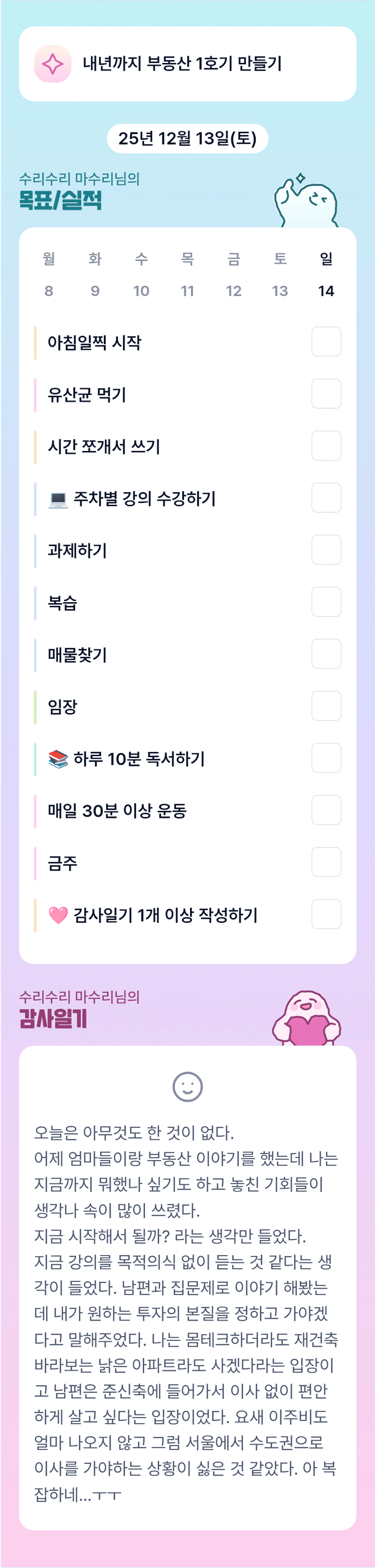 수리님~ 아직 늦지 않았어요 지금이라도 시작하면 됩니다~^^ 투자 공부를 좀 더 하시고 나서 결정해도 늦지 않으니 강의 남편분과 함께 들어보세요~ 아무것도 준비가 안된채로 이사하면 안되요