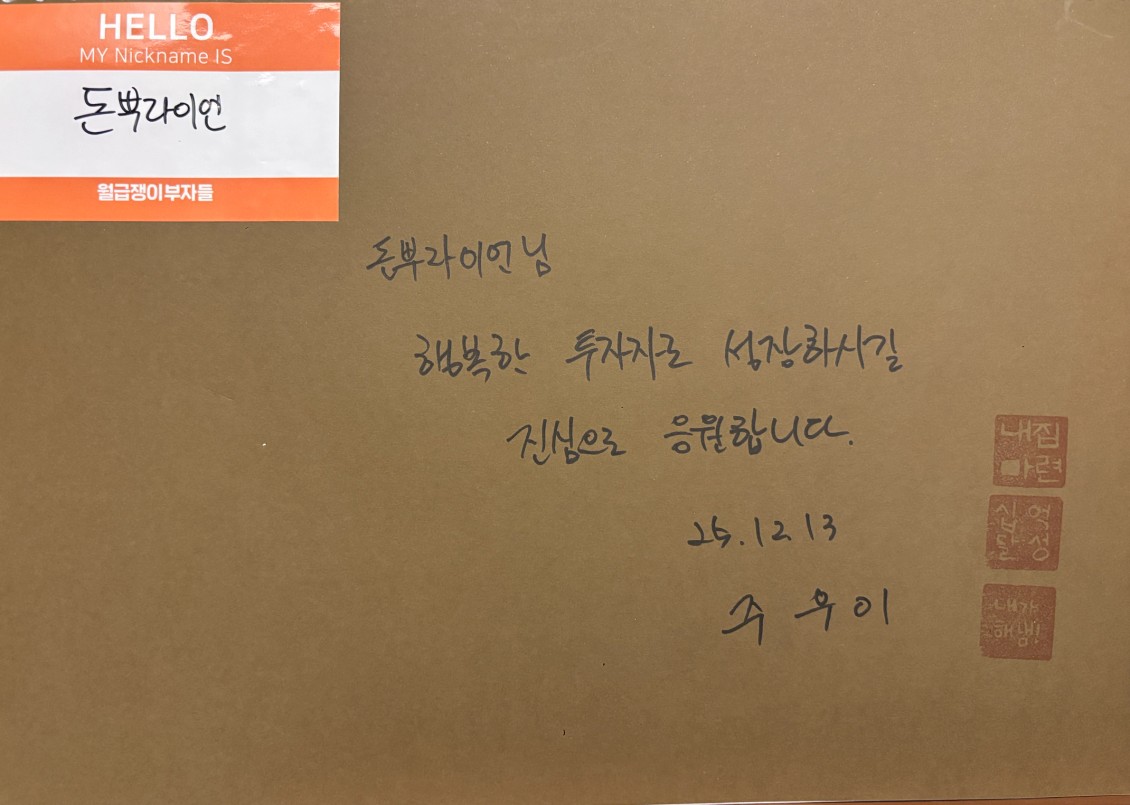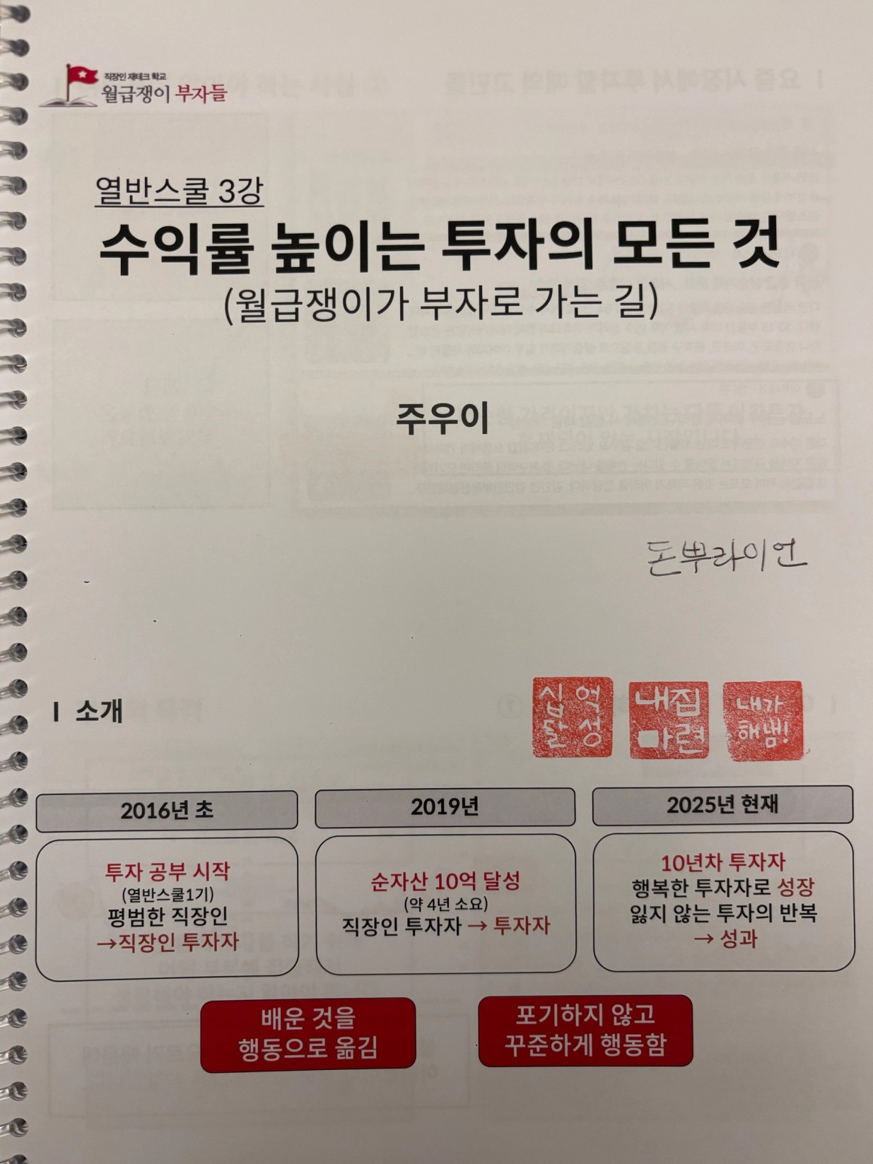 진도를 따라잡기 버거웠지만 월부의 완료주의에 따라 강의와 질의응답시간, 사진촬영, 주우이님 개인질의응답/사인회까지 마쳤습니다.