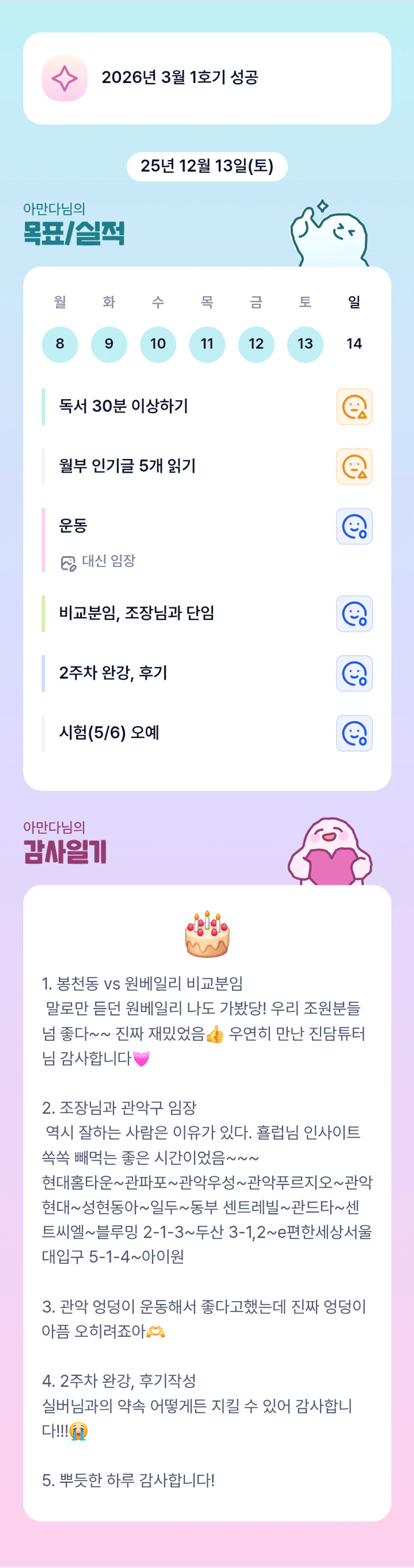 비가오나 눈이오나 아만다님의 열정은 그 무엇도 막을순 엄따🔥 부지런히 움직이신 결과 알찬 하루를 보내셨네요! 임장에 완강까지,,, 고생하셨습니다 아만다님 ㅎㅎㅎㅎ 진짜 뿌듯한 하루😆