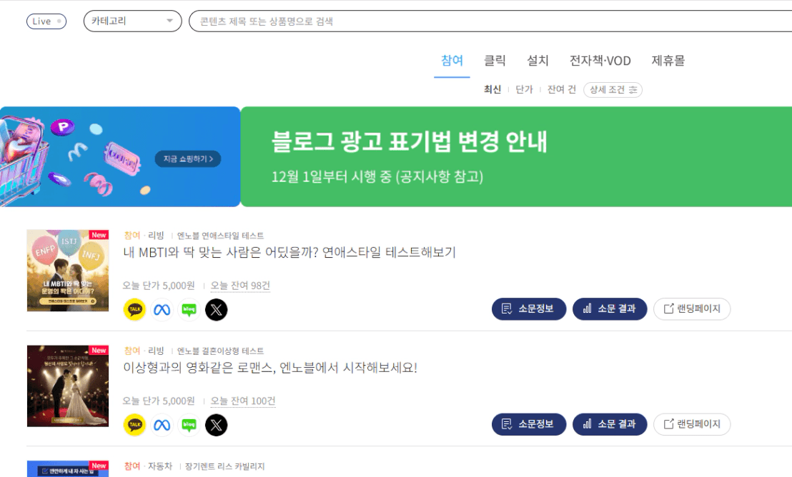 1. 드디어 제작한 페이지에 광고글을 게시했습니다.
