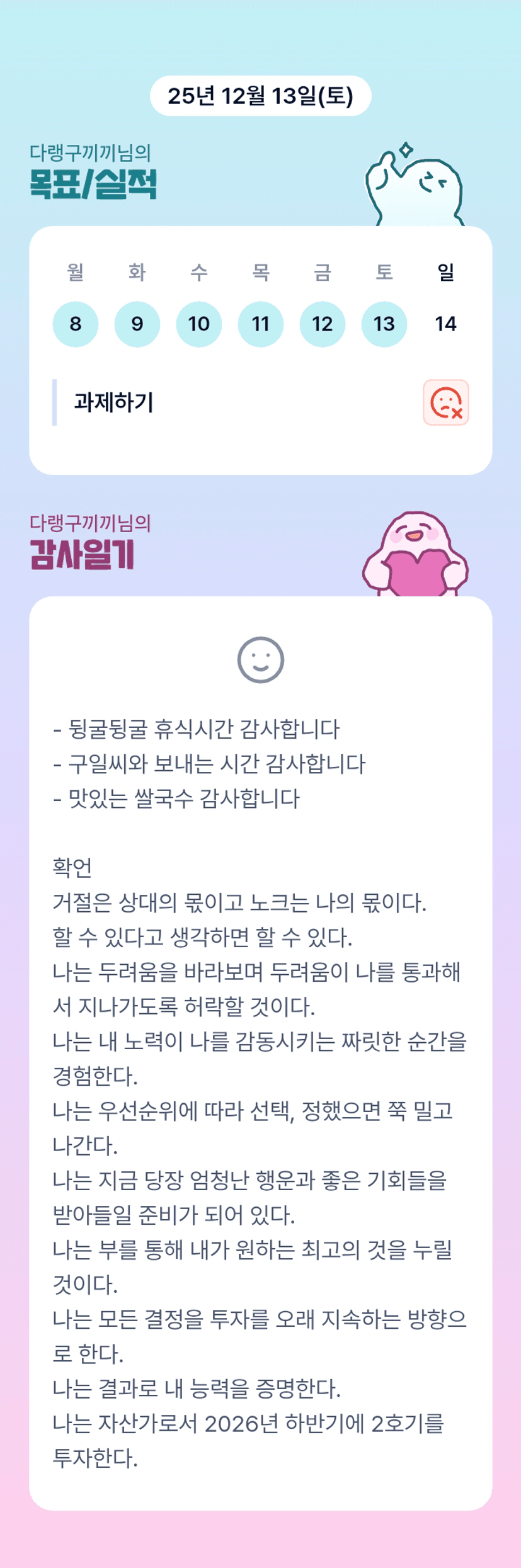 조장님 내년 2호기 투자 예정이시군요~ 홧팅입니다!! :) 오후에 만나요!