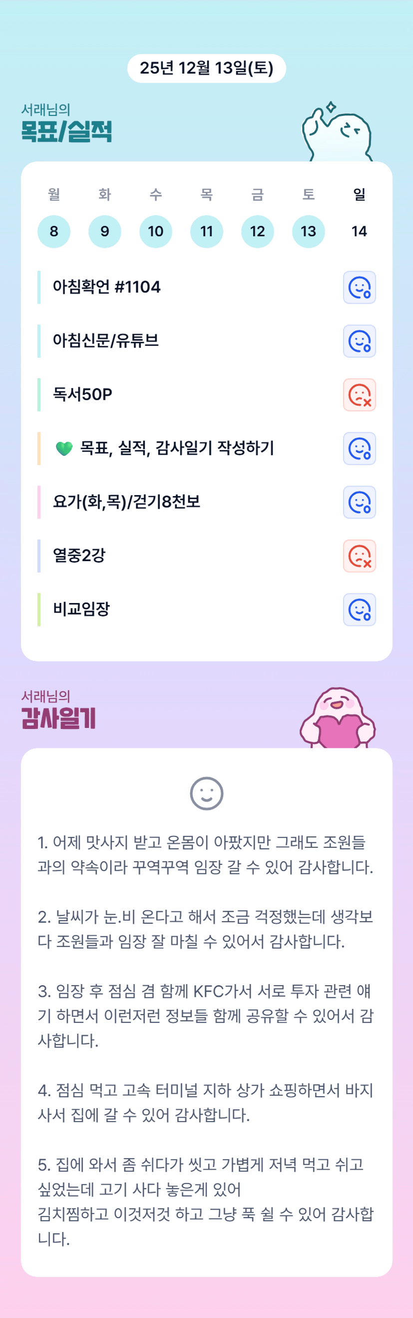 이런저런일로 힘든시간 보내셨을텐데 그래도 이겨내시고 버티시는 서래님 대단합니다.. 문제가 무사히 잘 해결되시길 🙏