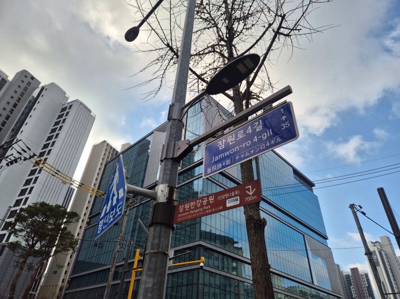 잠원역3번 출구에서 시작. 시작하자마자 팻말 잠원한강공원 700m