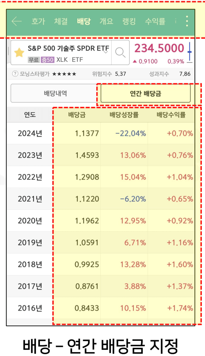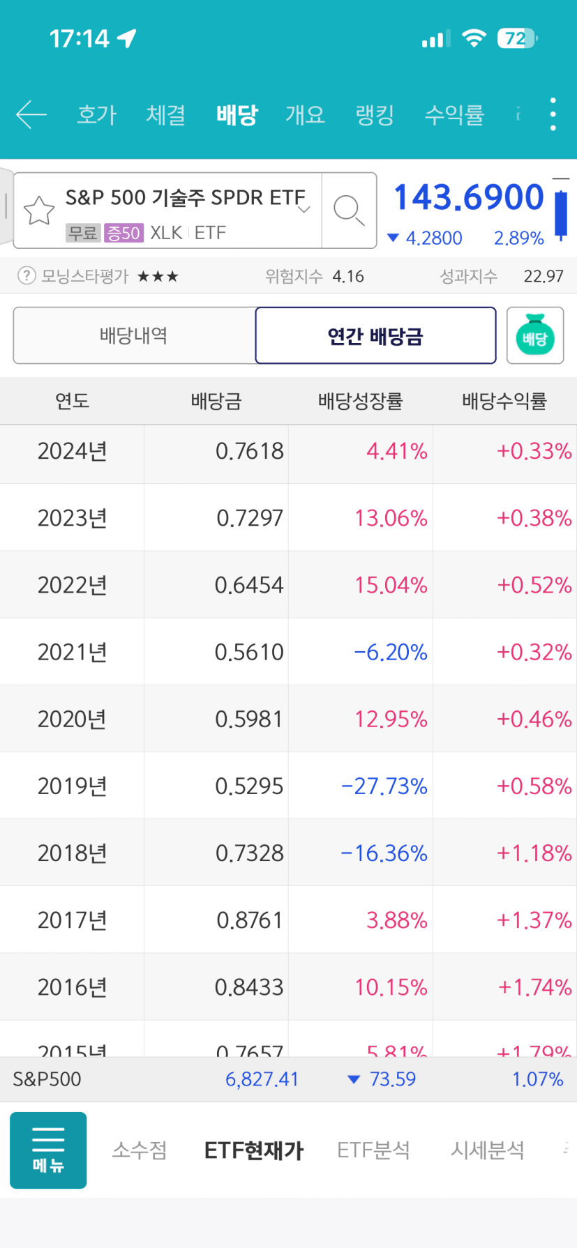 XLK의 최근 10년간 배당 정보를 확인하는 과제를 수행중인데,