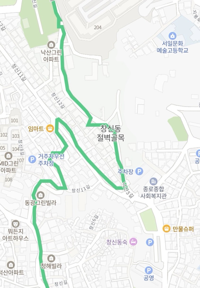 내려오는 길에 지도를 보니 골목 이름이 ‘창신동 절벽골목’