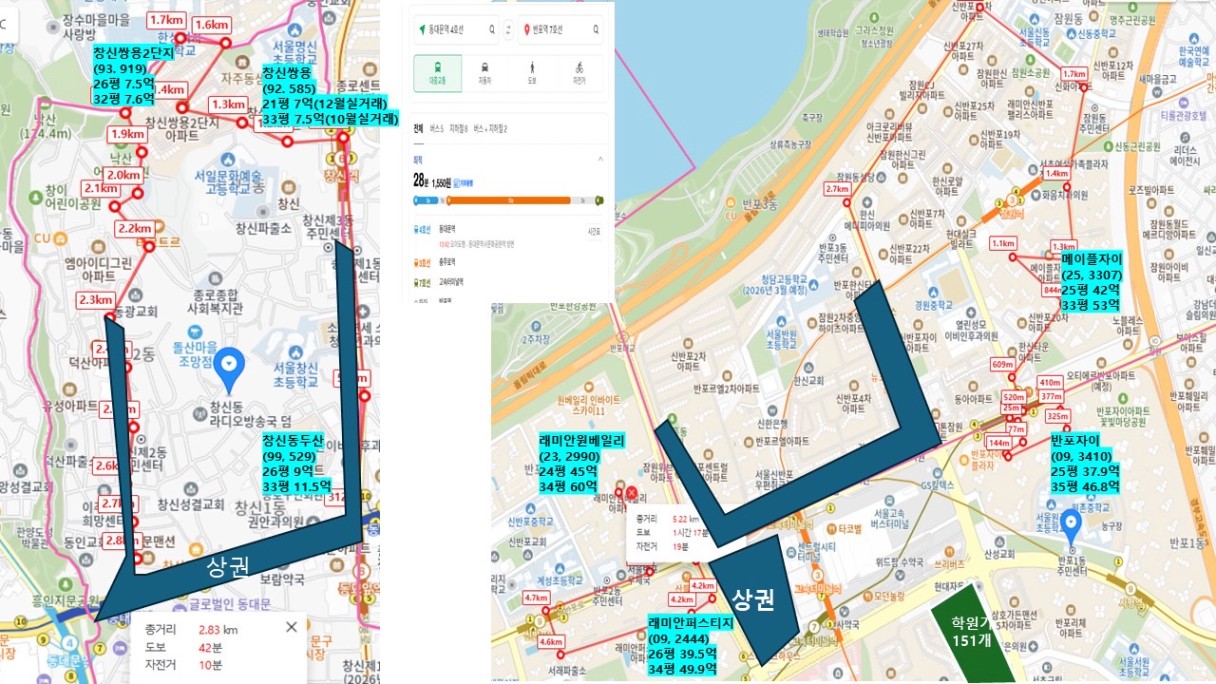 반포역으로 이동해서  반포자이 → 메이플자이 → 래미안원베일리 순으로 이동하였습니다.
