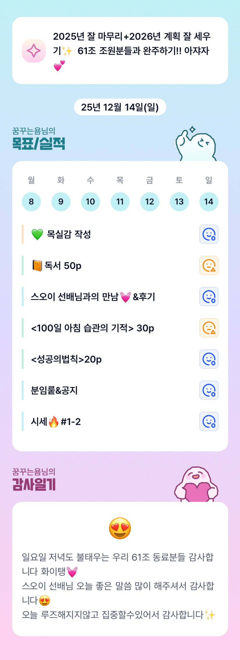 욤조장님 빠이팅🩷 오늘 고생많으셨어요🫶🏻