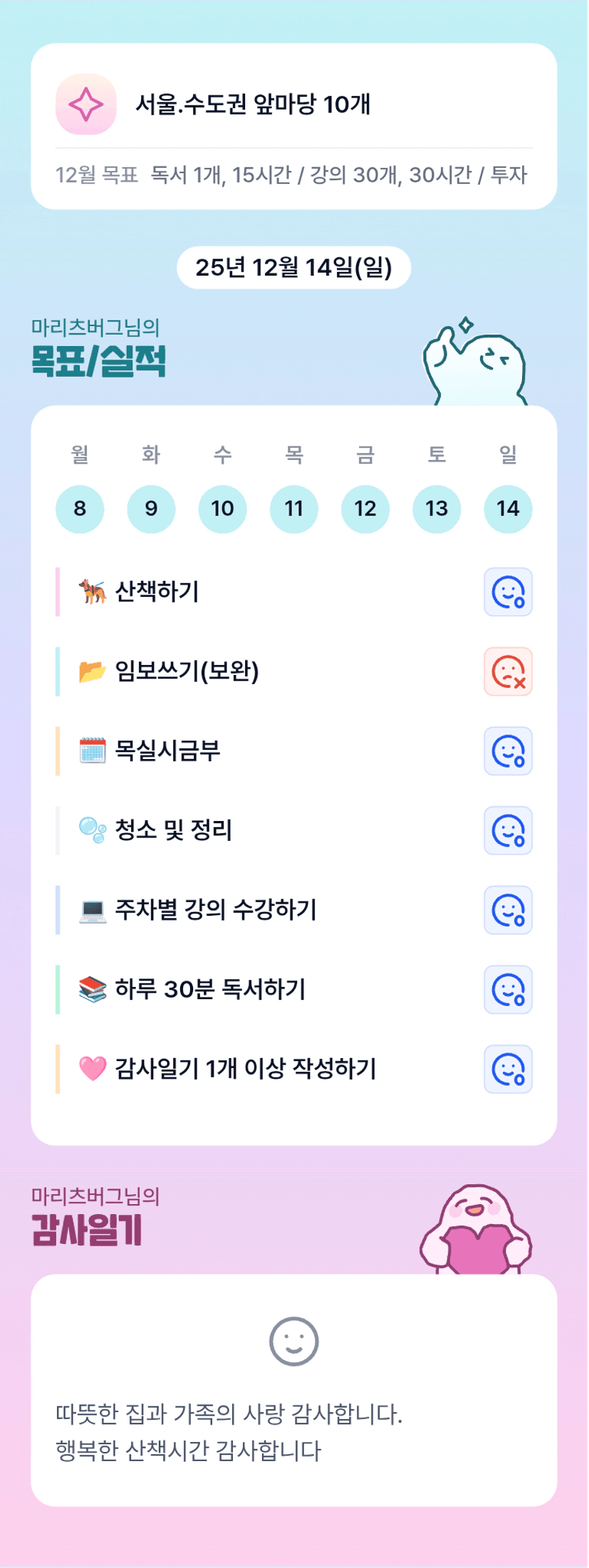 우리 마리츠님~~ 늘 꾸준한 모습 너무 멋집니다 진짜. 오늘도 행복한 하루 알찬 하루 만들어 가셔요~ 한 주의 시작 상쾌하게 화이팅입니다!♥