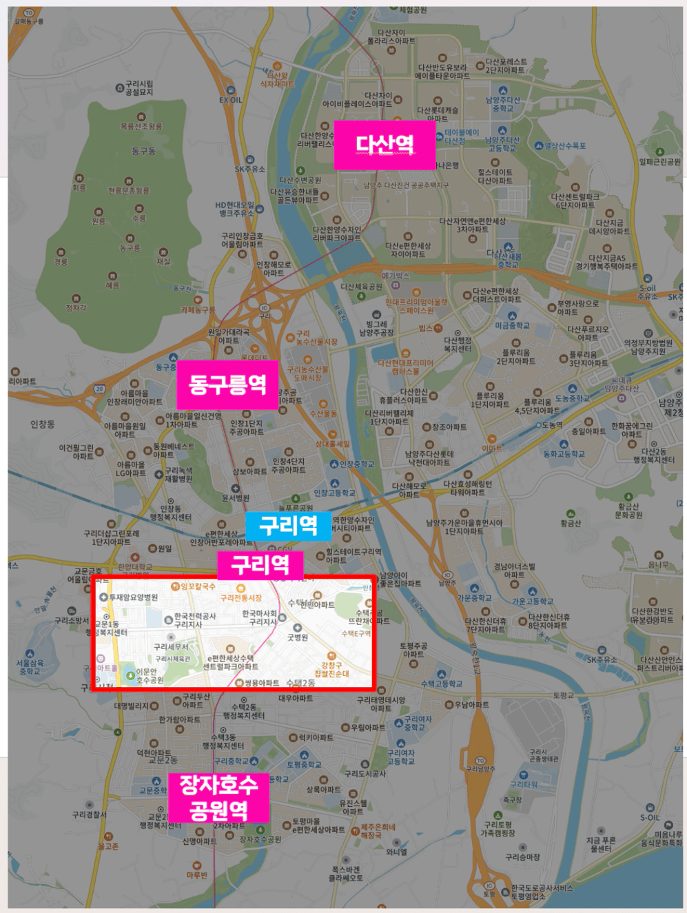 그런 거주민 입장에서 구리시의 생생한 임장기를 말씀드려볼까 합니다. 아! 그리고 요즘 관심 많으신 다산 신도시 임장기까지 작성할 예정이니 구리/다산이 궁금하셨던 분들을 이 글을 끝까지 읽어주시길 바라겠습니다. ^^