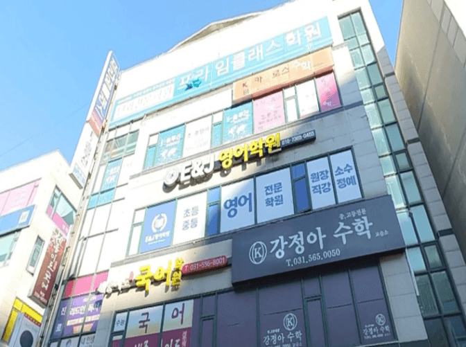 낮에도 밤에도 안전한 느낌을 주고 아이들이 많이 뛰노는 모습을 보이는데요. 줄넘기 학원, 배드민턴 학원 등 아이들을 위한 체육 관련 학원을 비롯해 각종 보습학원까지 다양한 편의시설을 갖춘 모습입니다.