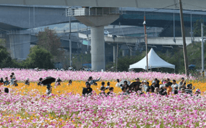 여기 호수공원에서는 거주민 분들이 주로 산책을 즐기시고, 아래 한강쪽은 “구리한강시민공원”으로 불리는 공원의 라이딩 길이 잘 되어있어서 자전거를 타거나 런닝하는 운동하는 사람들이 많습니다. 그리고 해당 길은 가을만 되면 코스모스 꽃이 활짝 피는 ‘코스모스 길’도 유명한데요. 나중에 가을이 되었을 때 방문해보시길 바랄게요!