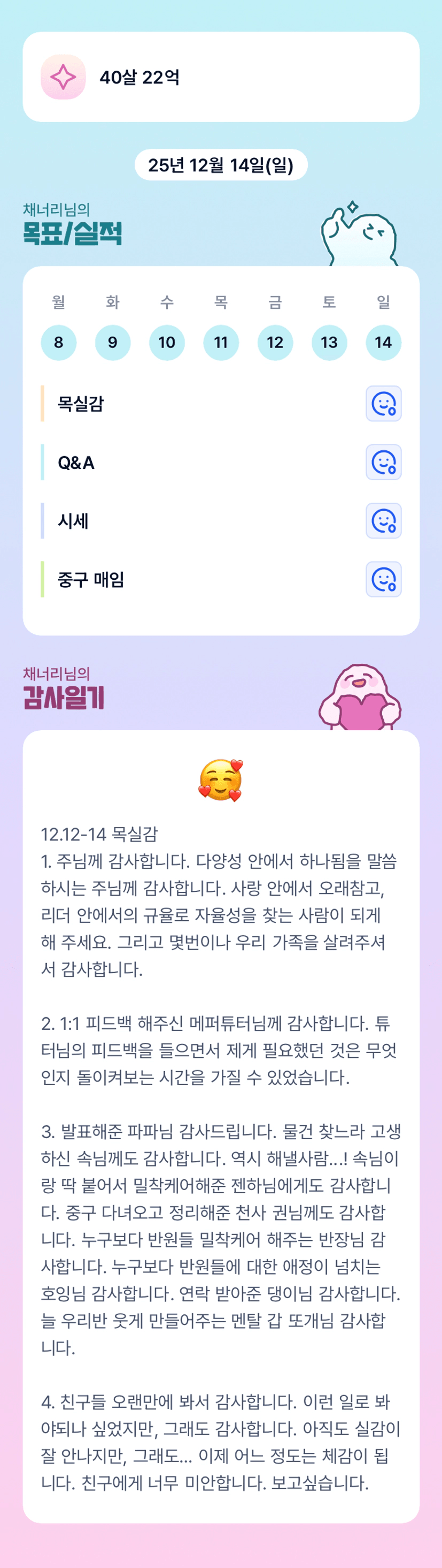 채부님 감사함 가득한 감사일기네요! 주말 너무 고생 많으셨어요~!