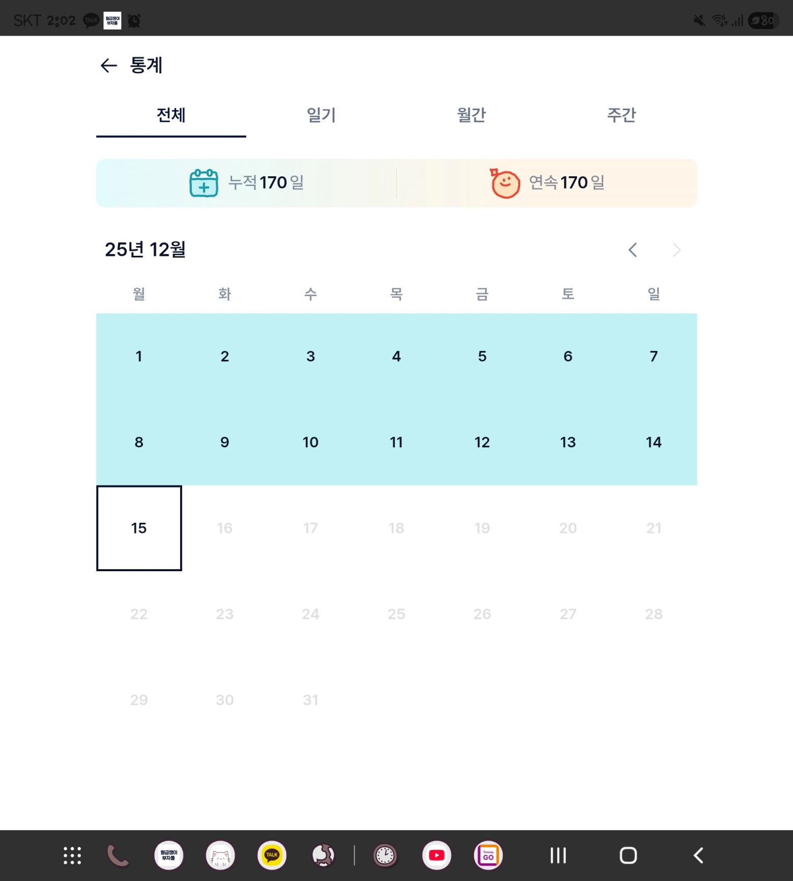 매일 목실감은 이제는 당연히 쓰지만 인증하는걸 자꾸 잊어버렸는데 감사일기 팀장님인 매니아님이 잘 챙겨주셔서 인증을 계속 할 수 있었다.