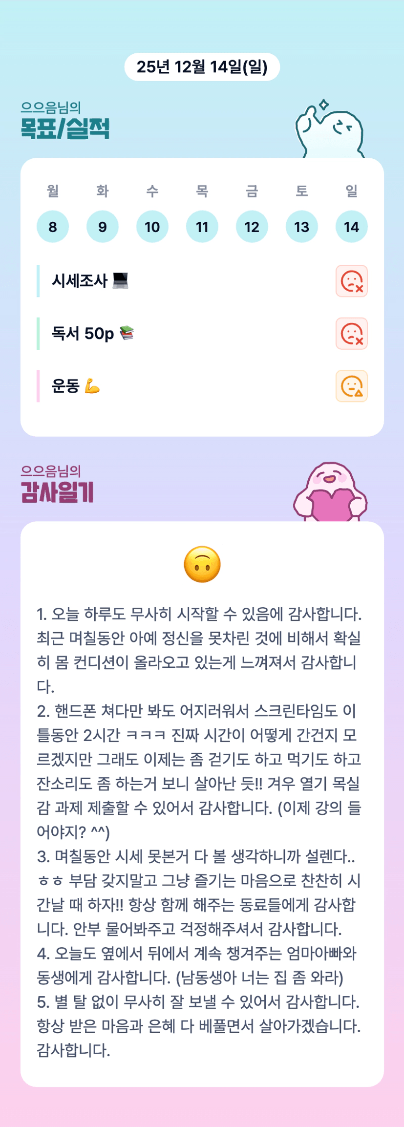 음님 컨디션 좋다고 하니 제 기분이 다 좋네요! 행복한 하루 보내세요!!