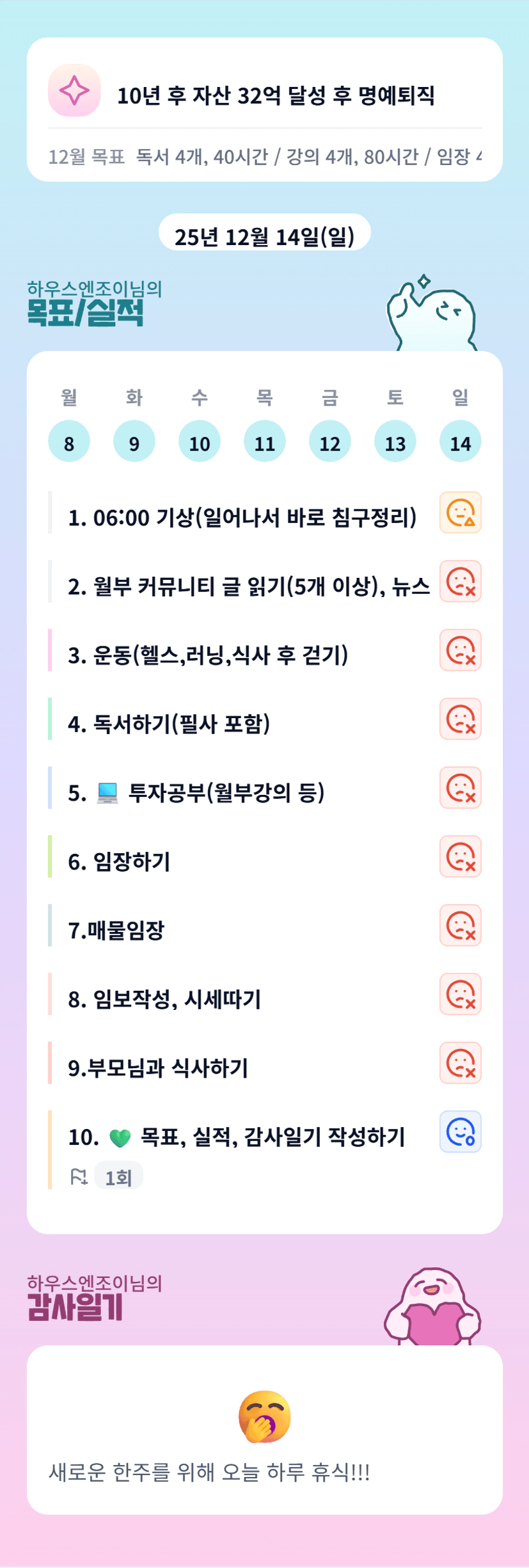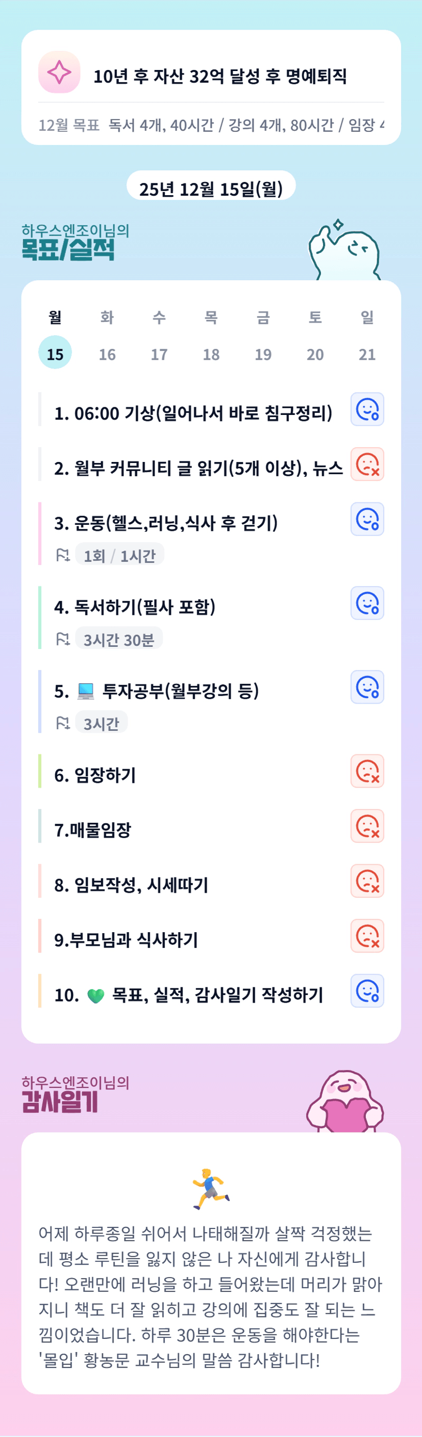 독서했던 내용을 행동으로 옮기시는 조이님 bm합니다! 오늘도 알찬 하루보내신 조이님 고생하셨어요