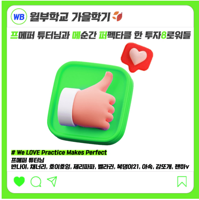 크 정말 호잉님 멋진분♡ 매번 생각만하고 실천못하는 부분을 실행으로 하시는 멋진 동료♡ 에용 정말! 멋지십니다 호잉님♡♡♡ 저도 한번 따라 !! 진짜!! 도전!! 중간복기!!