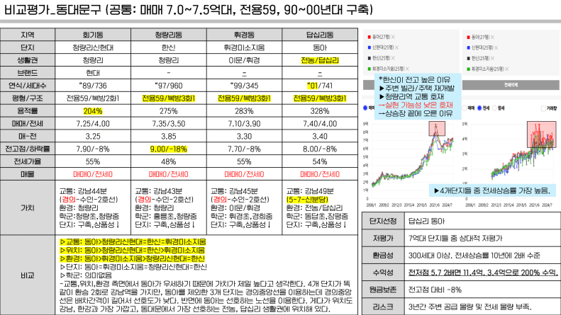 실거주 금액에 맞는 단지 비교평가 중입니다