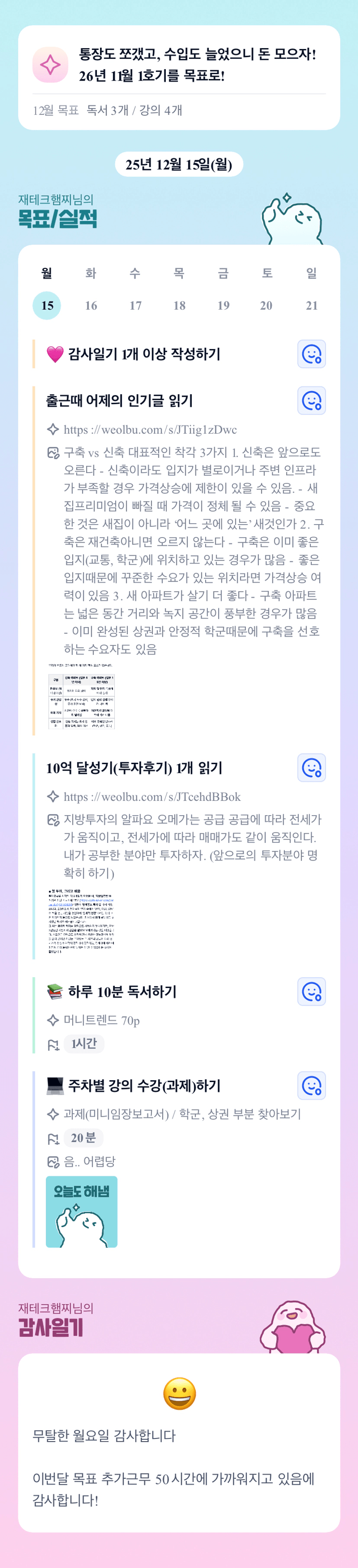 크 16일인데! 벌써!! 햄찌님 진짜 👍 👍 👍 매일 꾸준한 햄찌님 진짜 넘넘 멋지십니다!! 오늘하루도 성장하는 하루 함께 화이팅이에요! 아좟!!