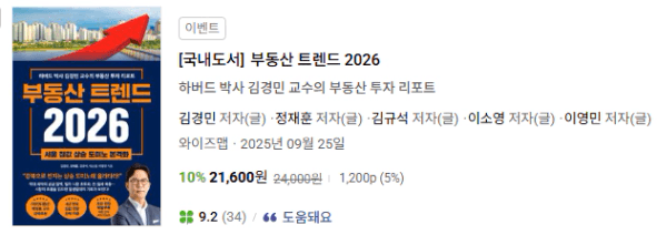6·27 대책, 관세 전쟁과 인플레이션, 아파트 시장 양극화, 주요 권역 가격 추이 등 부동산 시장의 대내외 상황을 꿰뚫는 ≪부동산 트렌드 2026≫은 부동산 거래를 결단하기 전에 반드시 숙지해야 할 필독서다.