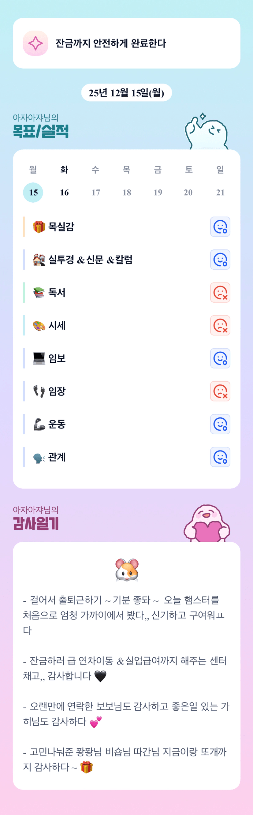 아쟈님 오늘도 고생 하셨습니다!