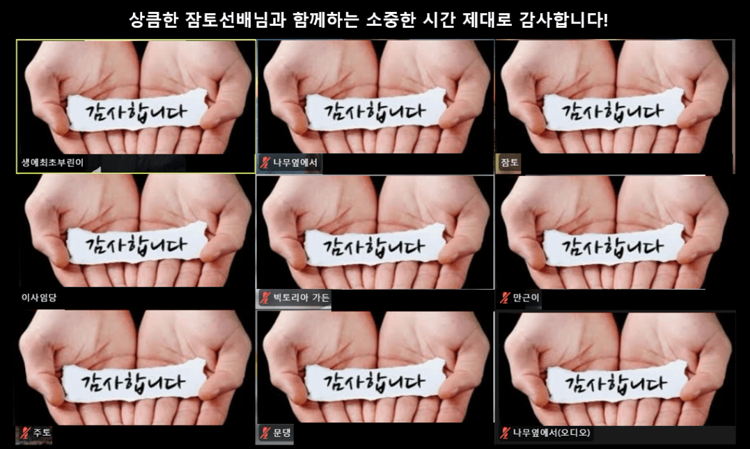 잠토 선배님과 조원들이 보여준 열정에 저도 마음을 다잡아 봅니다.
