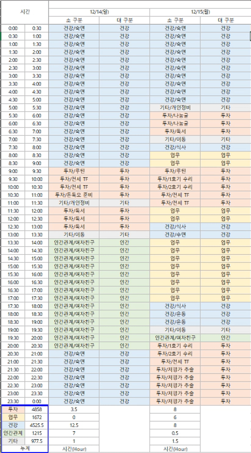 🌻12/14~15 시간 가계부