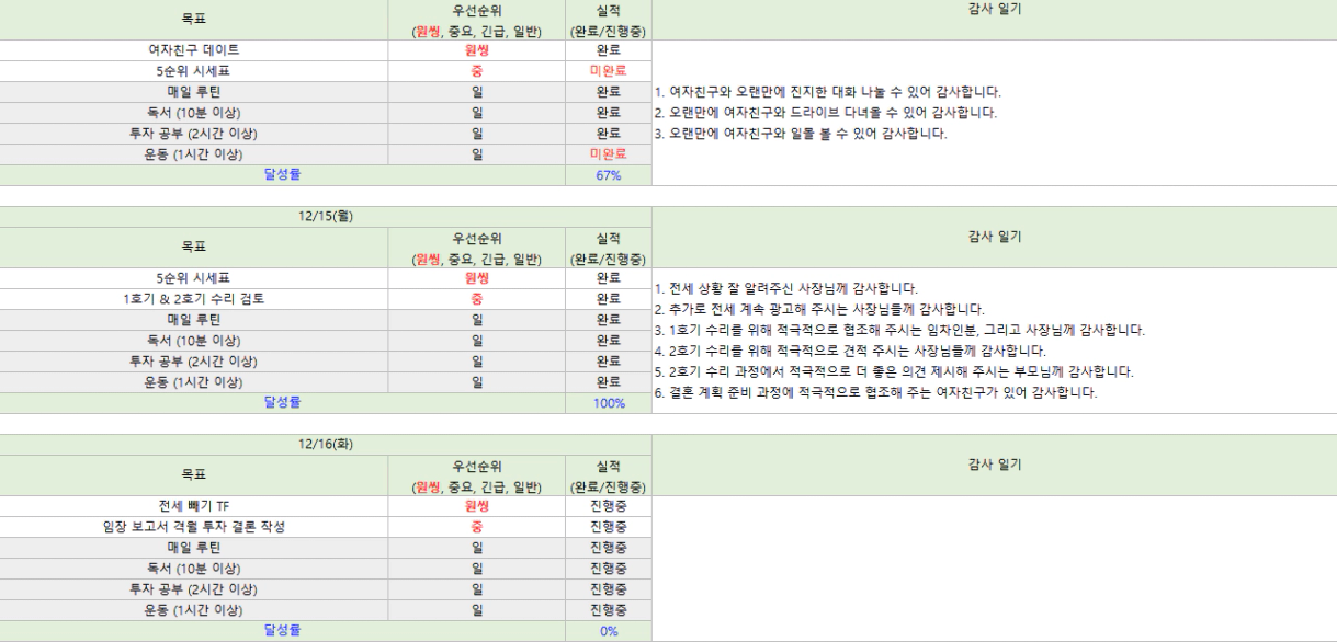 🌻12/16 목표, 12/14~15 실적 & 감사일기
