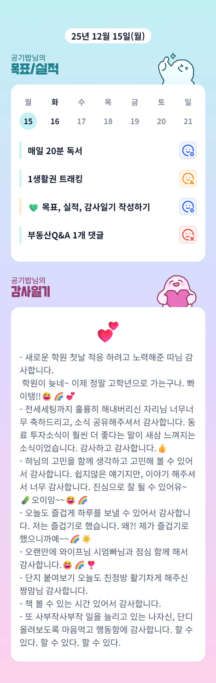 알찬 하루 보내신 공기밥 조장님 ^^ 오늘도 빠이팅이예요!!