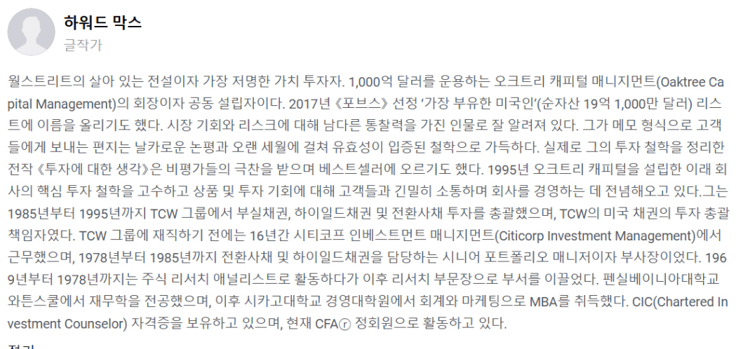 저자 및 출판사 : 하워드 막스/콜롬비아 비지니스 스쿨