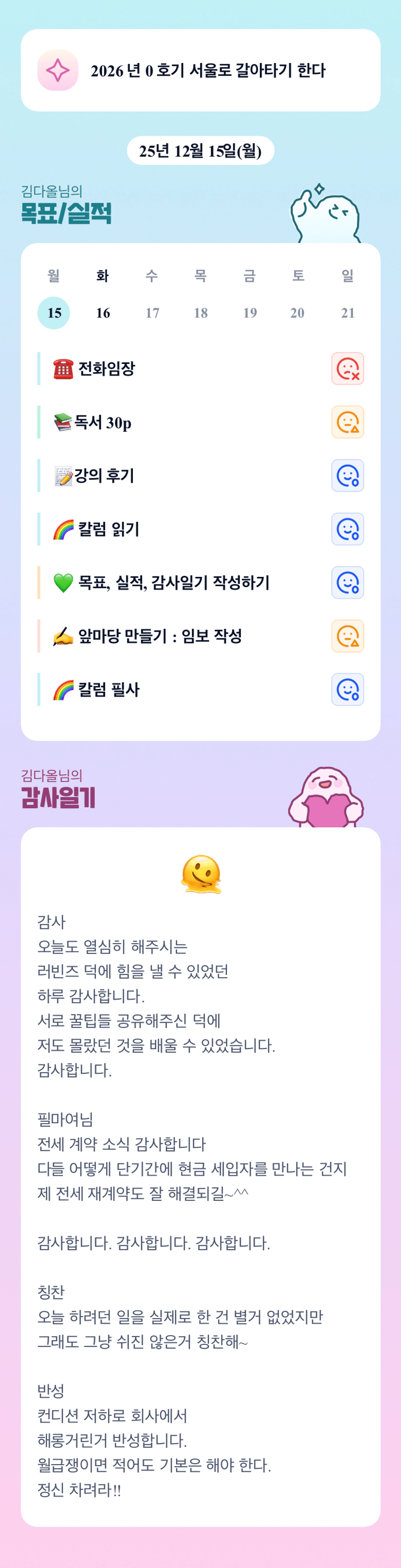 다올님 고생하셨습니다, 오늘도 화이팅입니다!