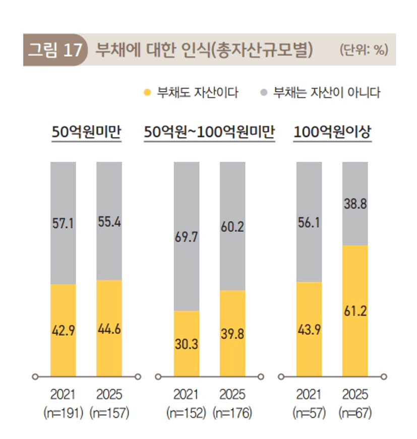 ‘부채도 자산이다’라고 응답한 비율을 한번 살펴봐주세요.