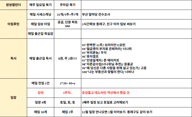 그래서 임장스케줄에 차질이 생겼지만, 그 다음주 매임은 일단 잡아보자