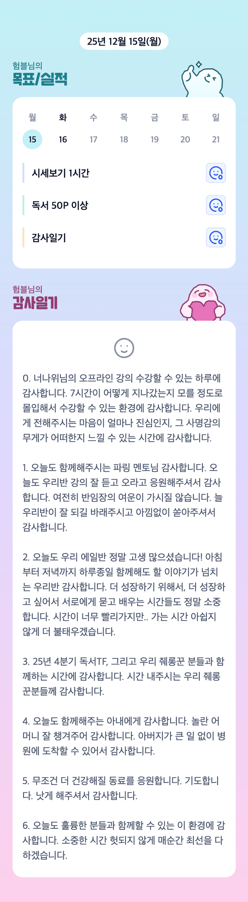에고 반장님도 놀라셨겠어여ㅜㅜㅜ 별일 없으시길ㅜㅜ 진짜 남은시간 불태우겠습니다❤️