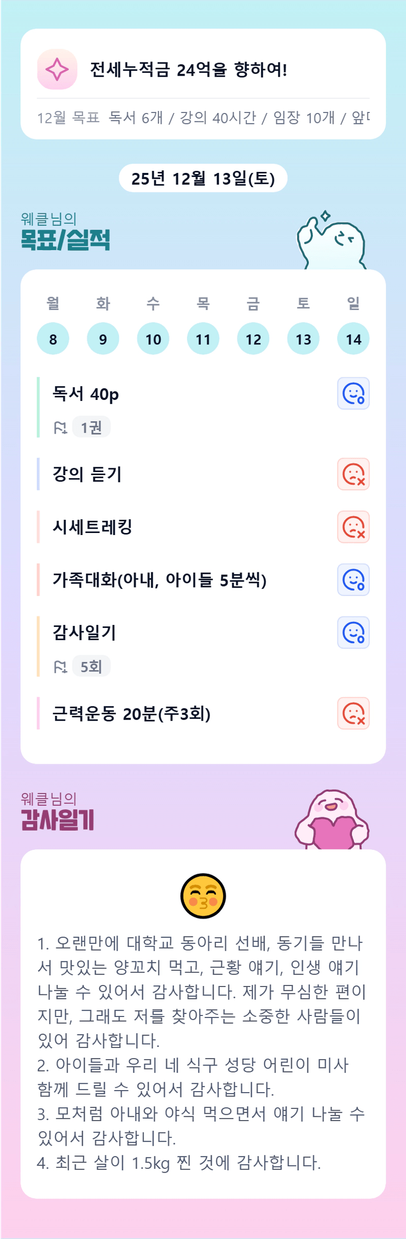 육체 근력뿐만 아니라 하루 3시간 공부로 투자 근력까지 키우신 웨클님!!! 짱짱 멋있습니다~♡