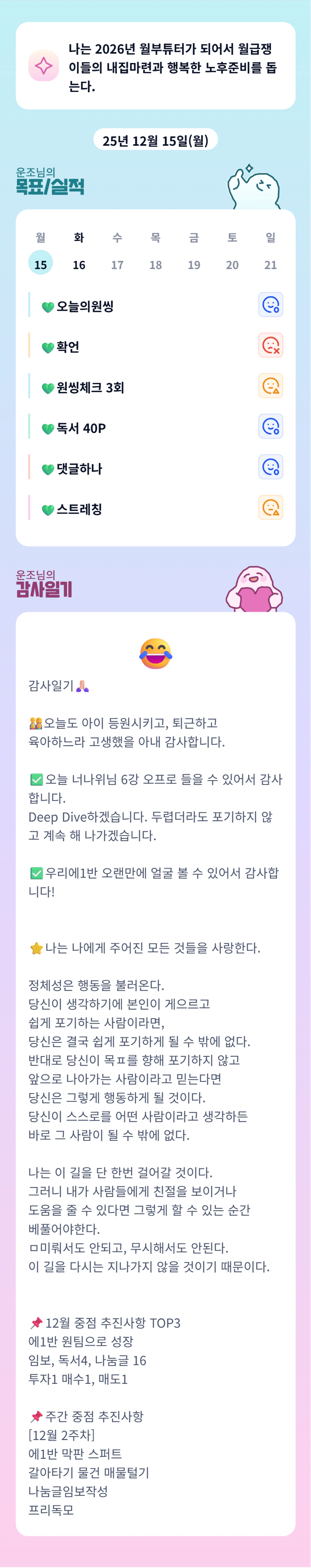 여러분들과 월부에서 끝까지 함께할 투자자, 운조입니다.