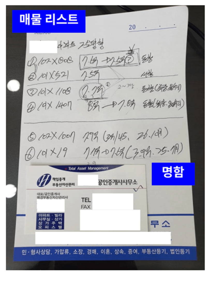 사장님께 매물 단위로 하나씩 여쭤보시면 전화임장으로 알 수 없었던 디테일들까지 알수 있습니다.