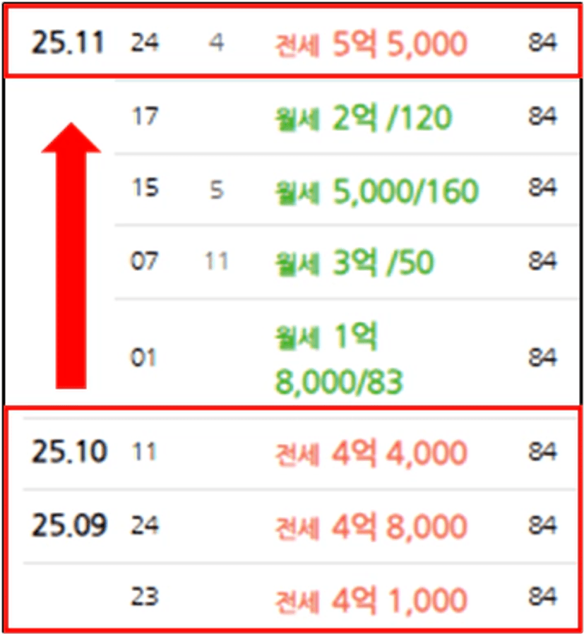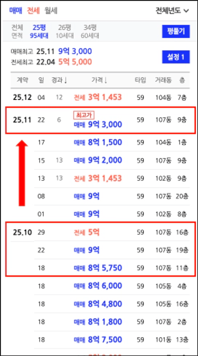 10월 대비 현재 매매가가 2%정도가 상승했고