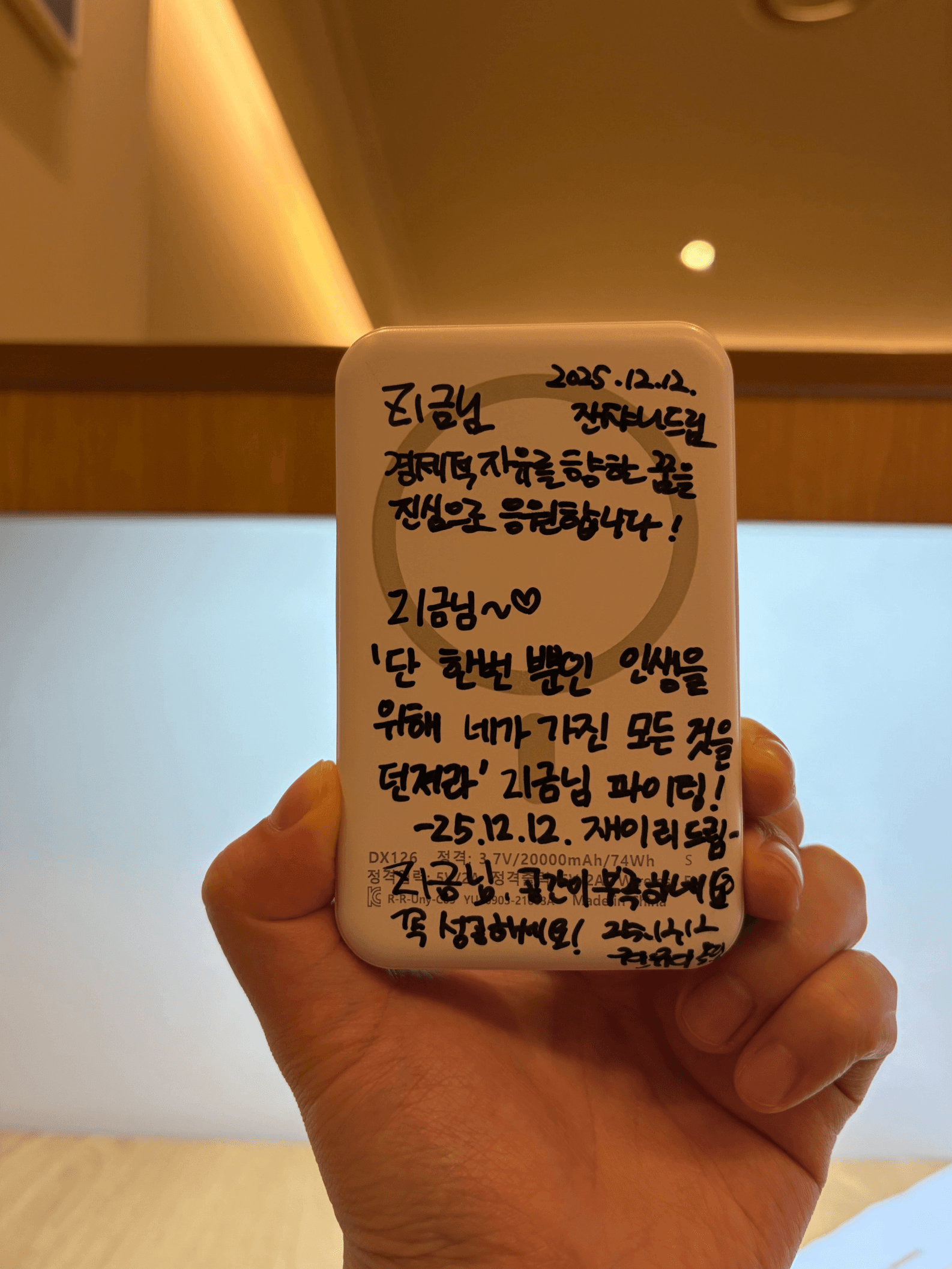 임장 필수품인 보조배터리에 멘트를 받게 되었습니다!