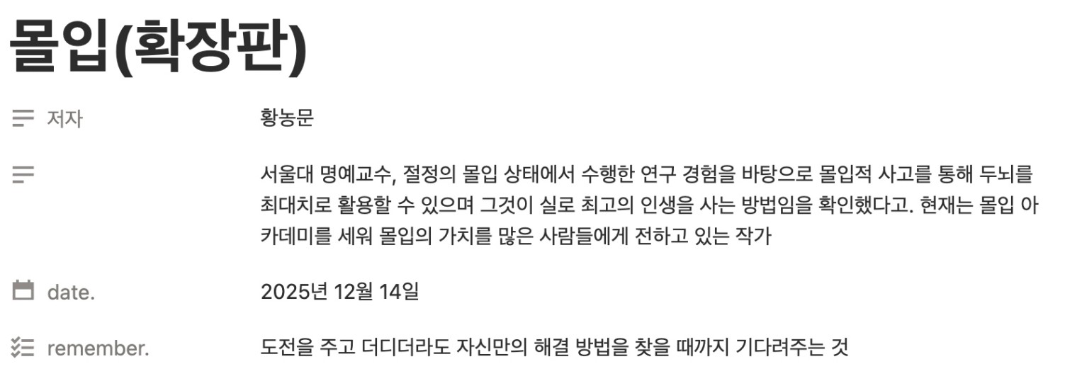 이 책이 말하는 몰입은 단순히 집중 잘하는 법이 아니었다. 내 삶의 확률을 바꾸는 방법에 가까웠다. 의식의 무대 위에 무엇을 올릴지를 스스로 선택하지 않으면 내 인생의 방향 역시 가장 저항이 적은 길로 흘러갈 수밖에 없다는 말이 투자를 대하는 내 태도와 정확히 겹쳐 보였다.